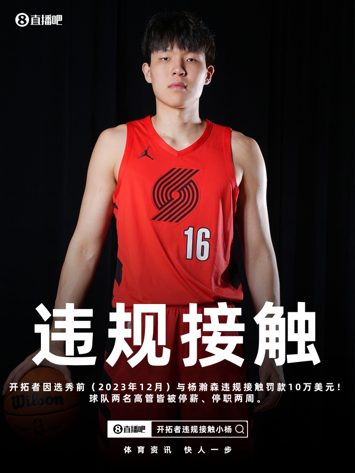 Shams:开拓者因在选秀前与杨瀚森违规接触被罚款10万美元!