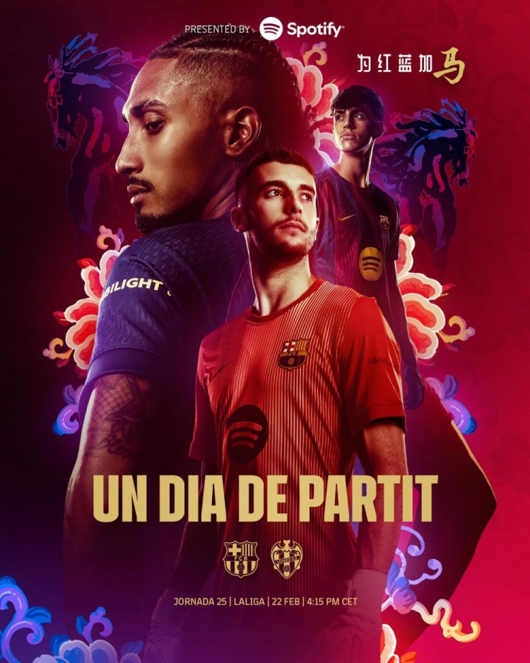 除此以外,巴萨今天的赛前海报和进球特效均含有马年元素。