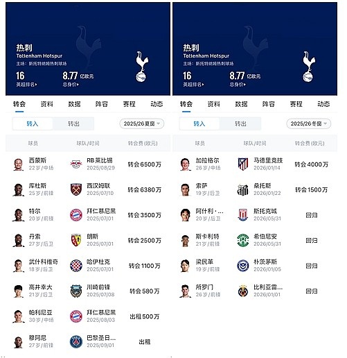 2024年底,热刺的债务总额已经达到了7.725亿英镑,列维在这种状况下依然坚持投资。2025夏窗,热刺的引援支出达到了2.11亿欧元(8名新援),过去的这个冬窗又花了5500万欧元(2名新援),最近半年来这里报到的球员可以拼凑出一套首发阵容了,这种体量的投入虽然不及利物浦、曼城,却超过大部分英超球队,没想到竟落入了“花最多的钱却挨了最毒的打”的悲惨境地。