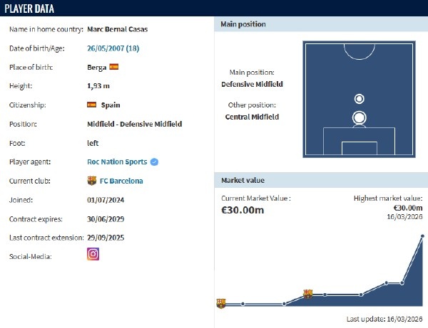 b. 会射门的布斯克茨:用进球征服球迷 本赛季贝尔纳尔复出之后,已经为巴萨在各项赛事中出战26场,一共踢了970分钟。弗里克最初对他的使用非常耐心,直到德容受伤后,才让贝尔纳尔重新成为先发,出任球队后腰。 让人吃惊的是,只有18岁的贝尔纳尔在这970分钟里,贡献了5球1助攻。考虑到德容踢后腰时数据不彰显,更让贝尔纳尔的数据引发球迷热议。
