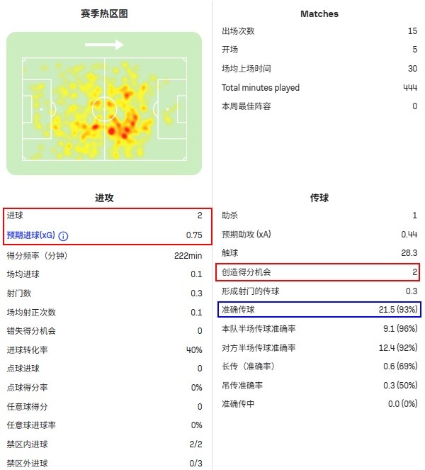 b. 进球还会更多:给他创造远射的机会 贝尔纳尔本赛季西甲场均踢30分钟,传球次数是21.5次,这个数据在巴萨后腰里是偏少的。不过他一共才踢了444分钟就收获了2球1助攻,创造了2次绝佳得分机会,这充分说明了他在直接参与进球方面的天赋。 要知道他的预期进球才0.75,不得不说,贝尔纳尔在门前是真的有点东西。
