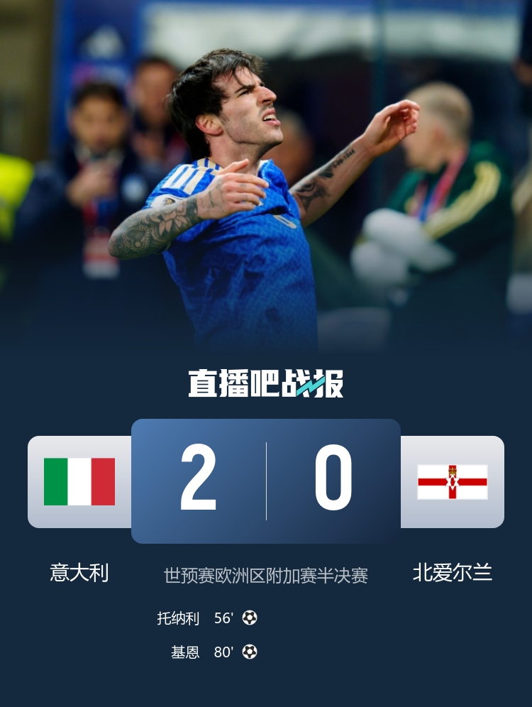 还得是赌王!托纳利远射贴地斩破僵,意大利1-0领先北爱尔兰